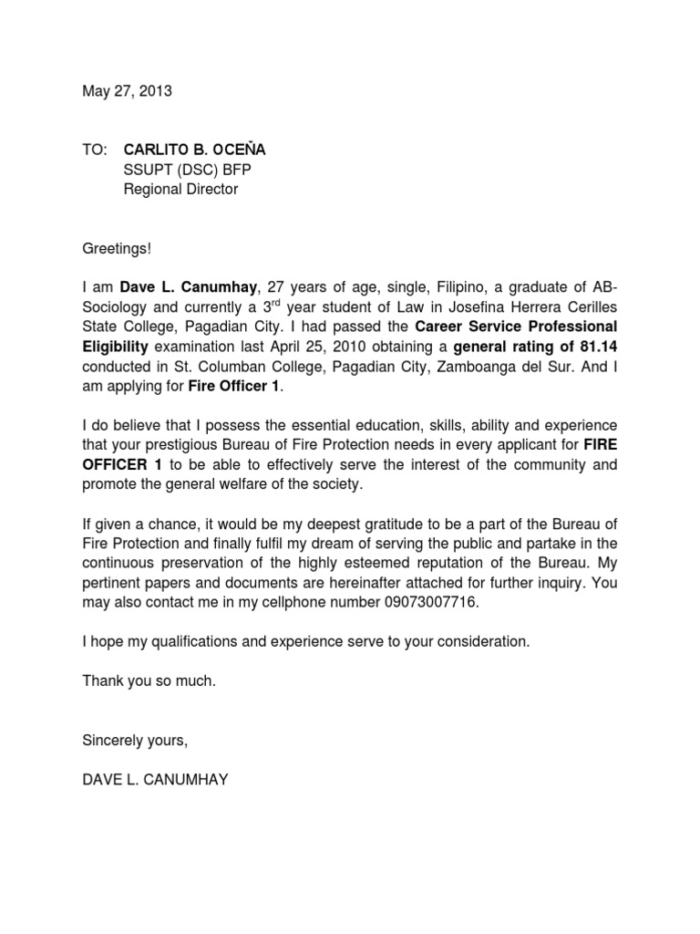 Application Letter For Fire Learning